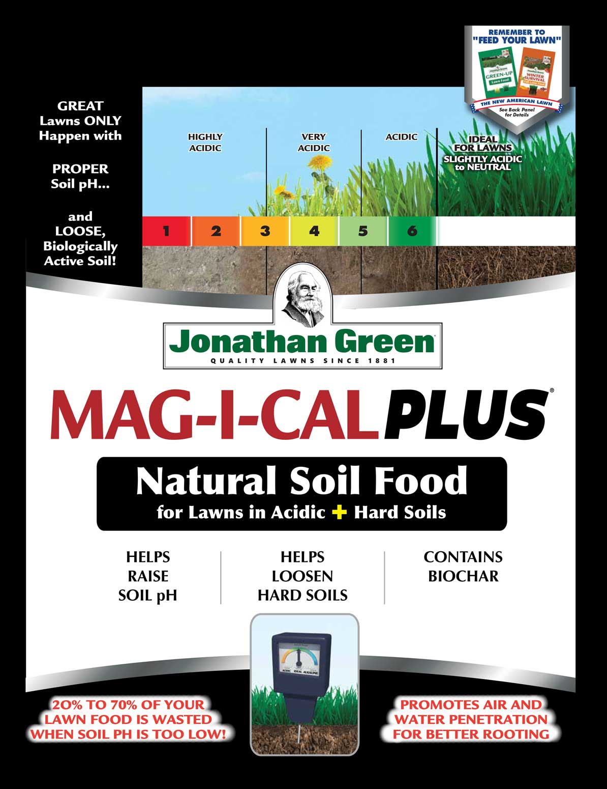 MAG-I-CAL® PLUS Soil Food for Lawns in Acidic & Hard Soil is the product for your lawn if you need to RAISE the pH in your soil.