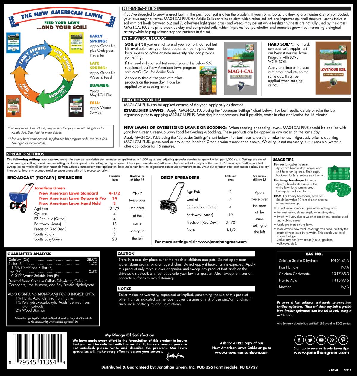 Mag-I-Cal Plus for Lawns in Acidic & Hard Soil contains calcium carbonate in a completely soluble form that is immediately available to adjust soil pH upwards. Poor soil is often the problem in growing a great lawn, and calcium is vital to many grass plant functions. When soil is compacted or too acidic, air, water, and nutrients are unable to reach the roots, making it very difficult for grass to flourish.