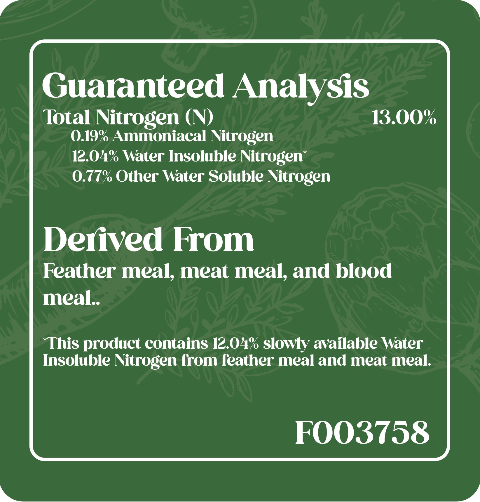 Origin 13-0-0 uses multiple natural nitrogen sources, including feather meal, meat meal, and blood meal, to provide a slow and steady release of nitrogen for consistent plant growth.