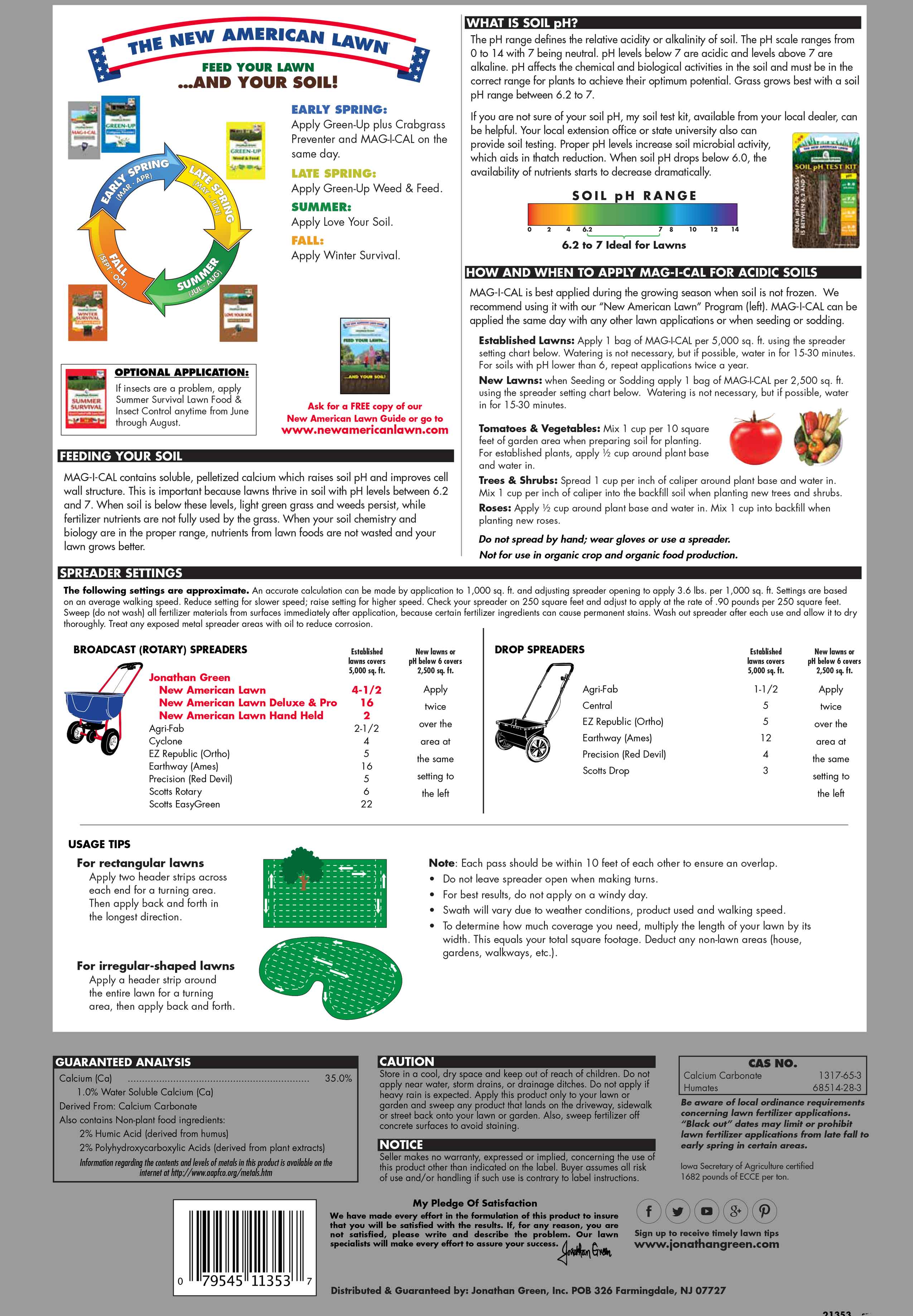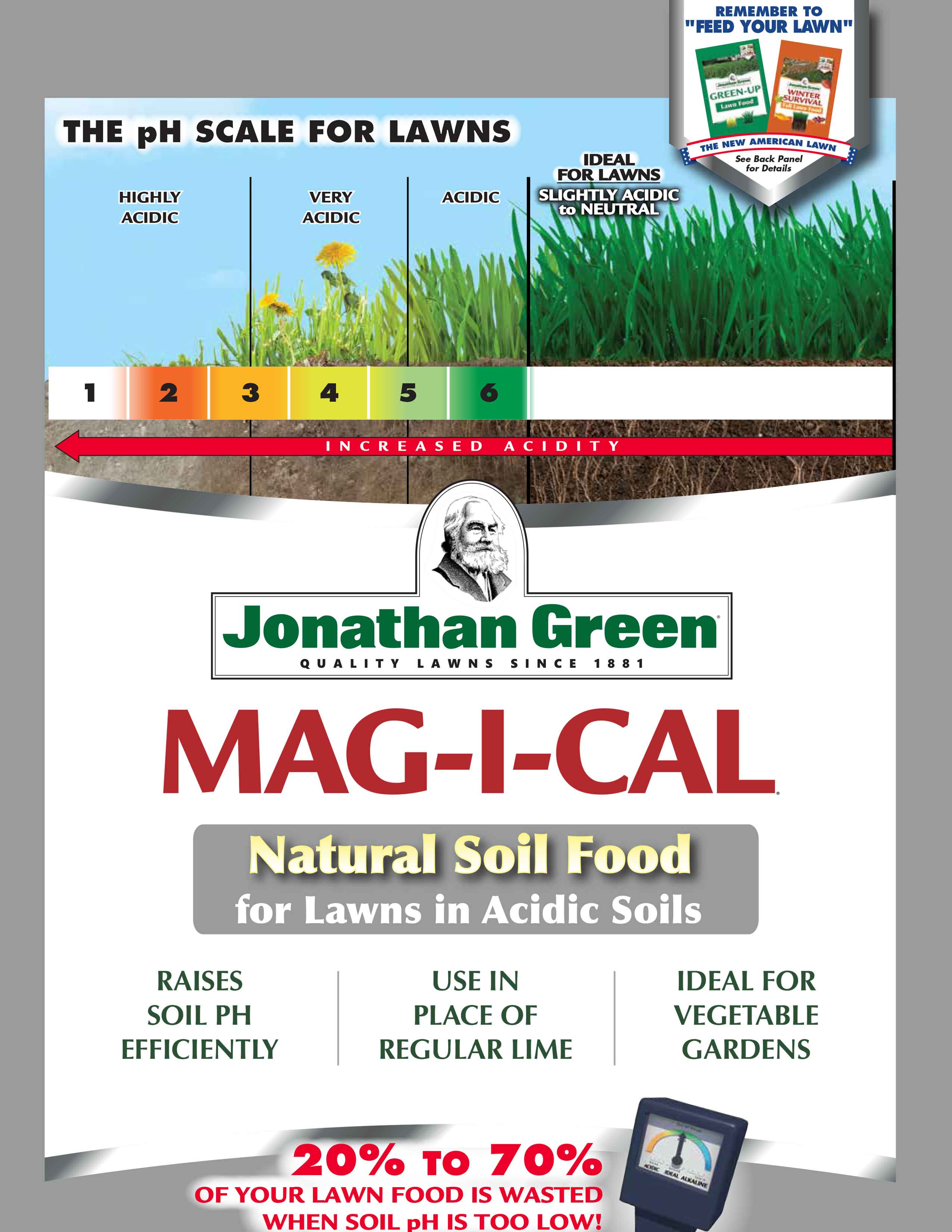 Lawns thrive in soil with pH levels between 6.2 and 7.0. When the pH level of the soil is below this range, grass becomes light green, weeds persist, and fertilizer nutrients are not fully absorbed. Mag-I-Cal Plus also contains humates to stimulate soil microbial life. When soil chemistry and biology are balanced, nutrients from lawn foods are not wasted, and the grass will thrive.