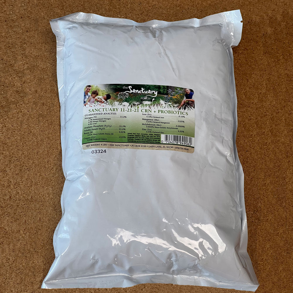 11-21-21 Sanctuary is a water soluble fertilizer that contains micronutrients and bacteria, providing nutrients that promote rooting and healthier grass.