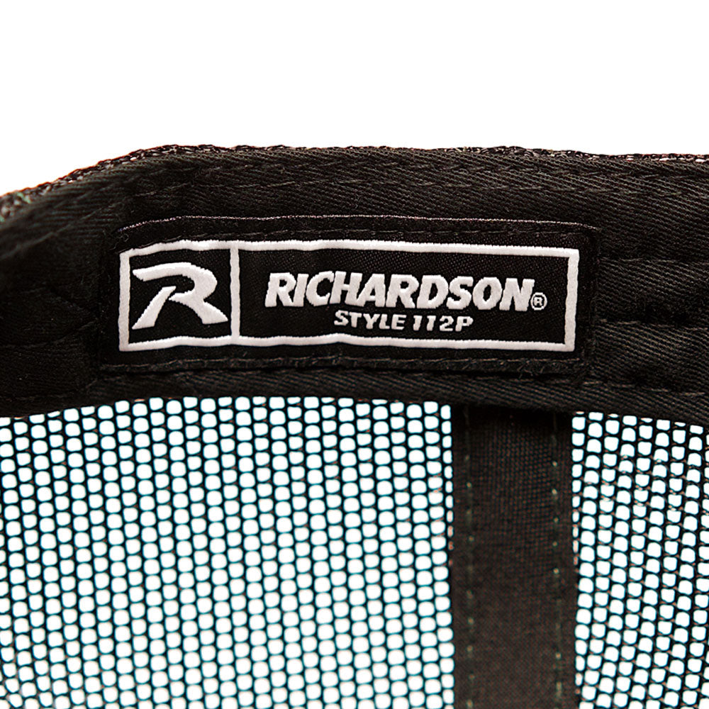 All of this is on the Richardson 112 curved-brim trucker. The Richardson 112 is the gold standard in curved shaft truckers and works great with this oversized YM patch.